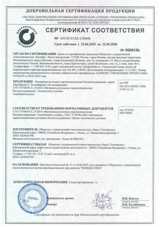 Сертификат Соответствия ПВХ мембрана PLASTFOIL