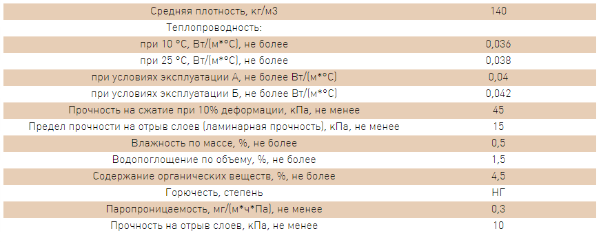 Плотность и другие технические характеристики плит Техноруф вы можете узнать, изучив данную таблицу: